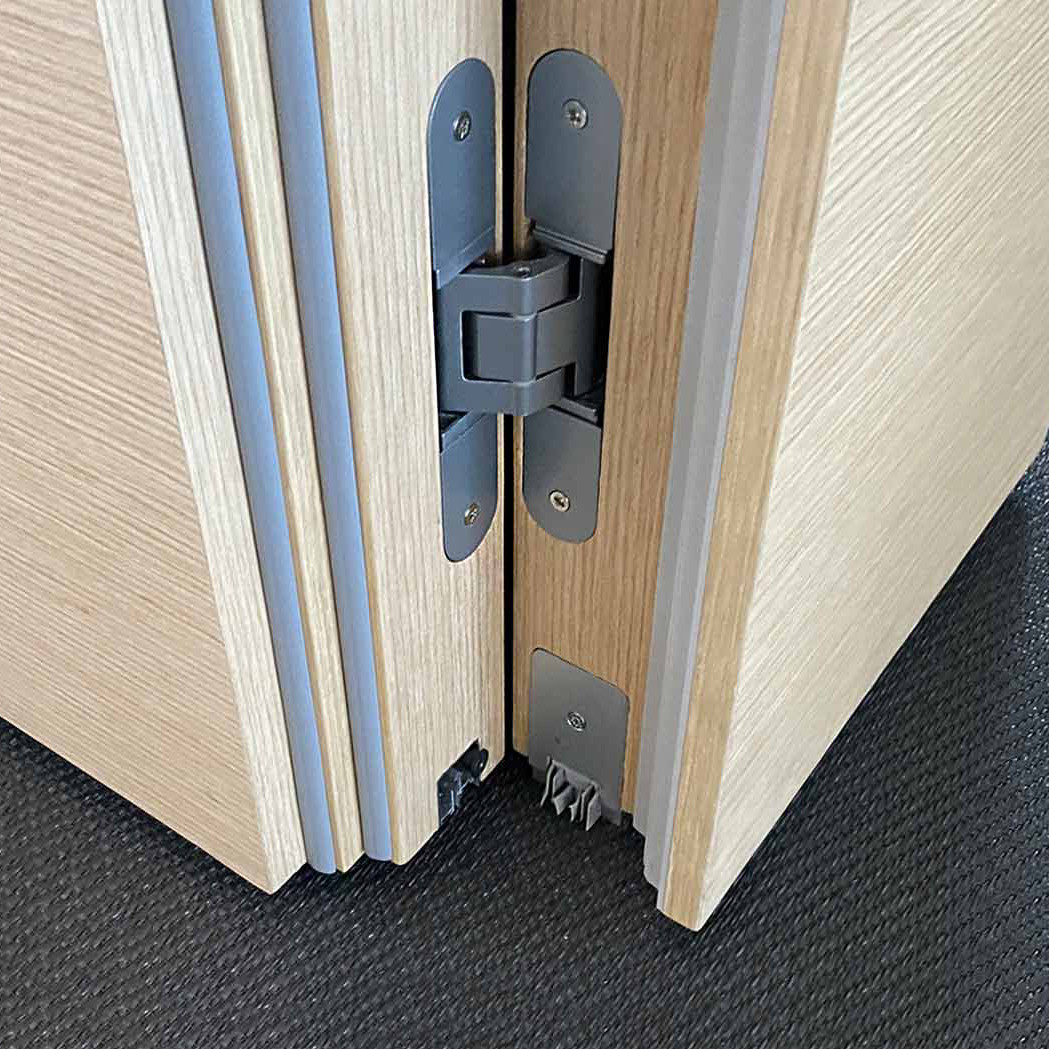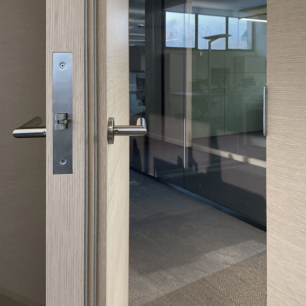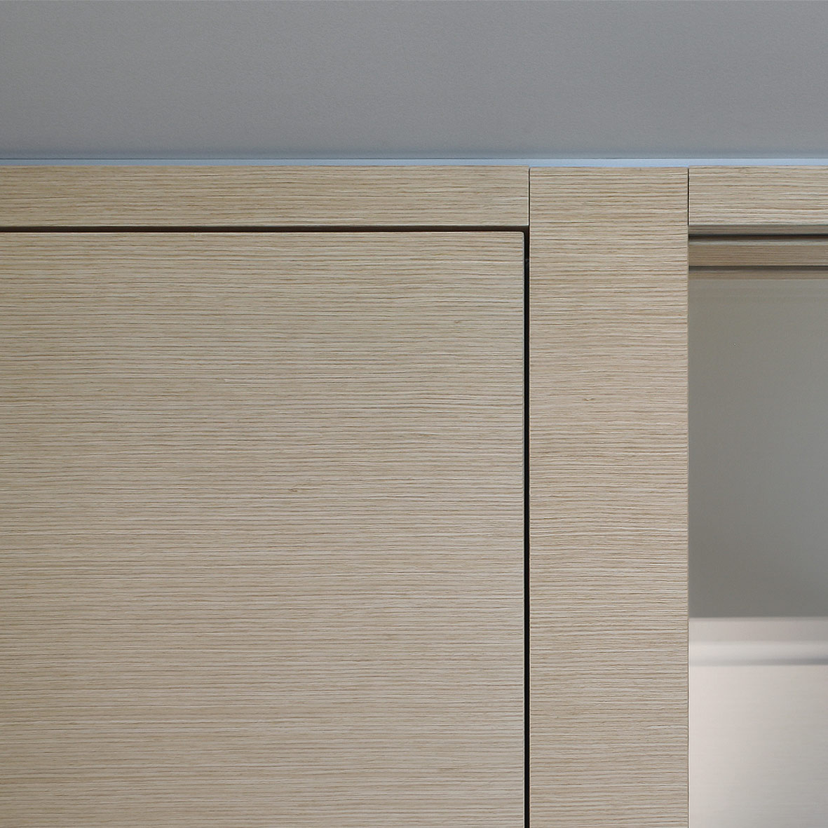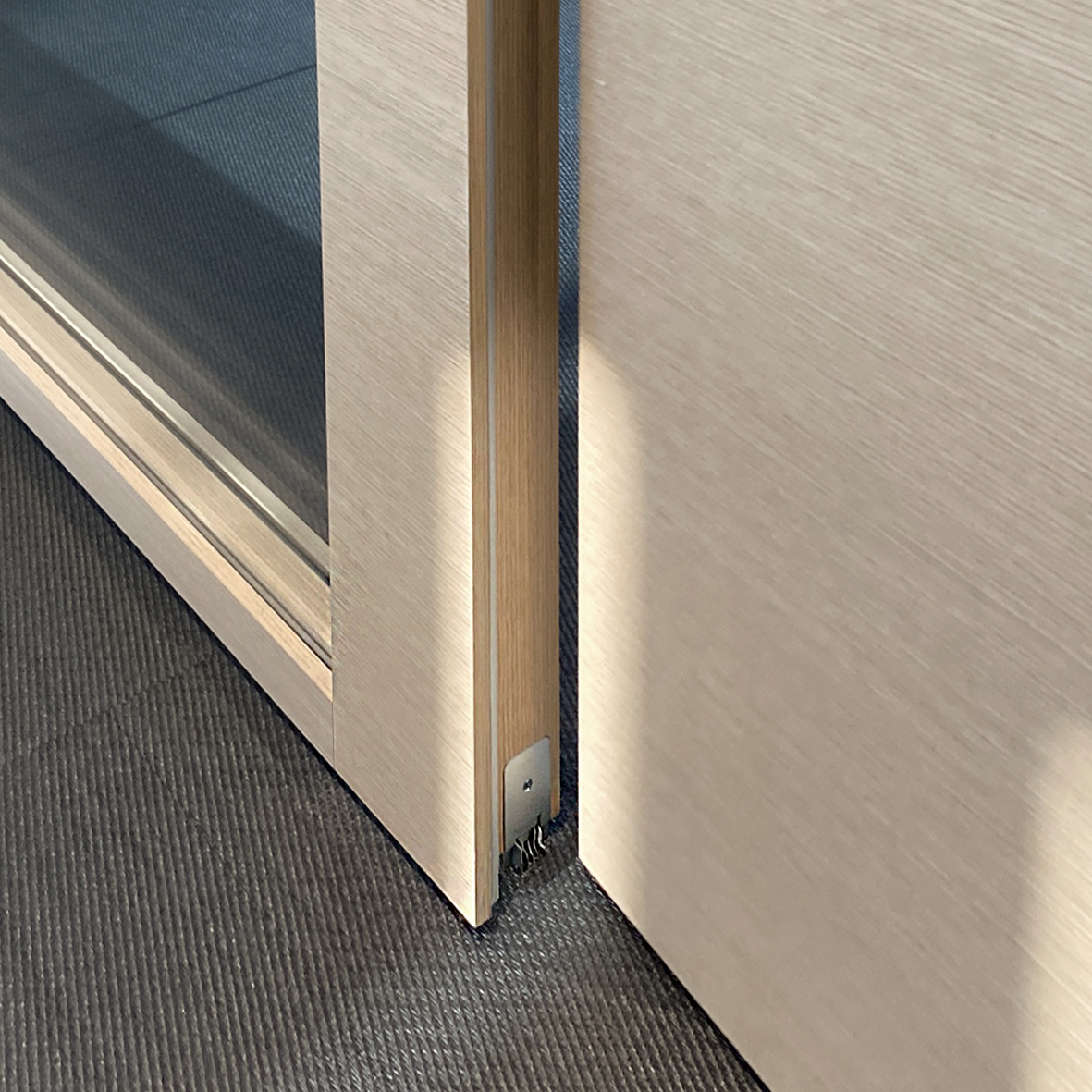 Le profil des montants de la porte maintient la même esthétique que la cloison, avec un espacement de 12 mm [1/2”] autour des montants, offrant une esthétique harmonieuse.